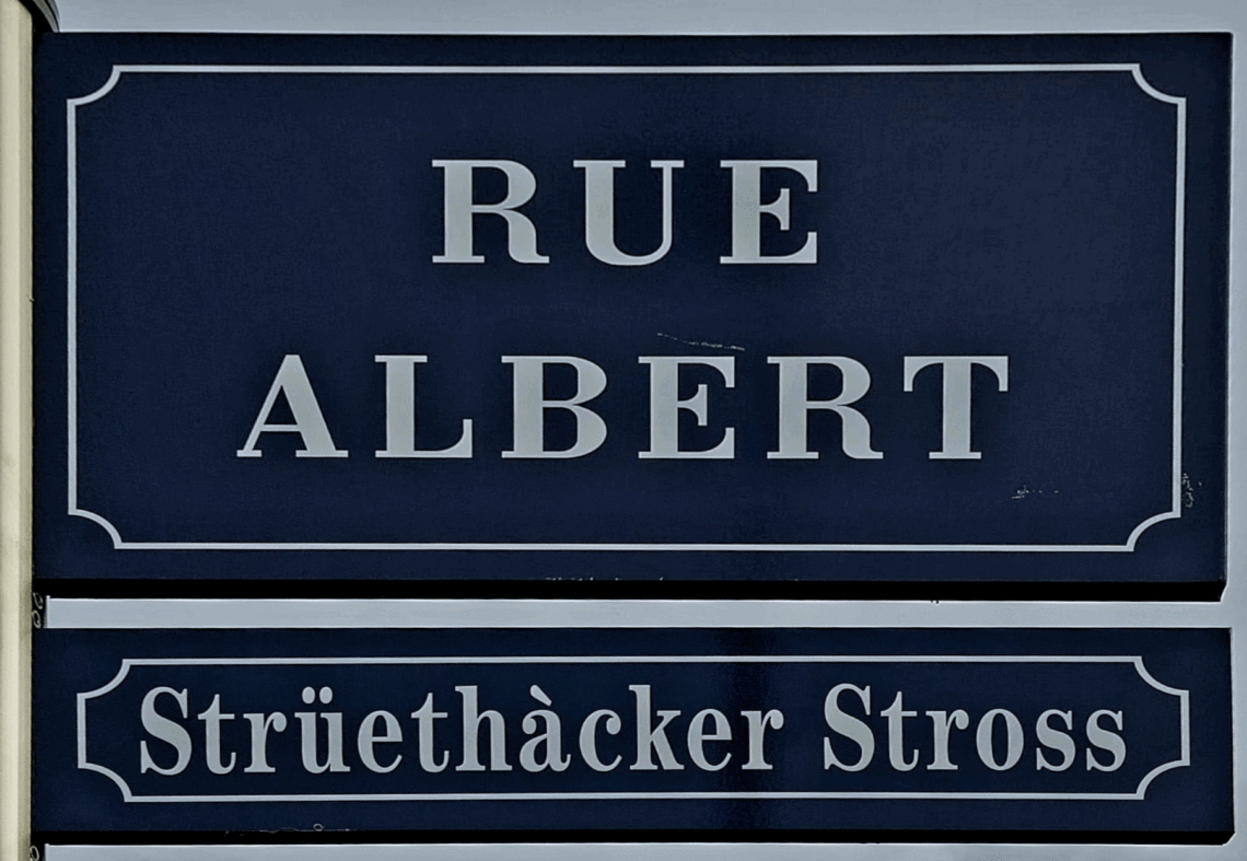 rue Albert (rue) / Strüethàcker Stross 23 février 2024 Précédent Début 2023 : 13 nouvelles rues bilingues à Mulhouse ! Plus récent Armistice (rue de l') / Mauerhain Wag Vous aimerez aussi Amidonniers (rue des) / Stärkagassla 23 août 2016 Tondeurs (rue des) / Frescheweid 23 août 2016 Tanneurs (rue des) / Gàrwergass 23 août 2016