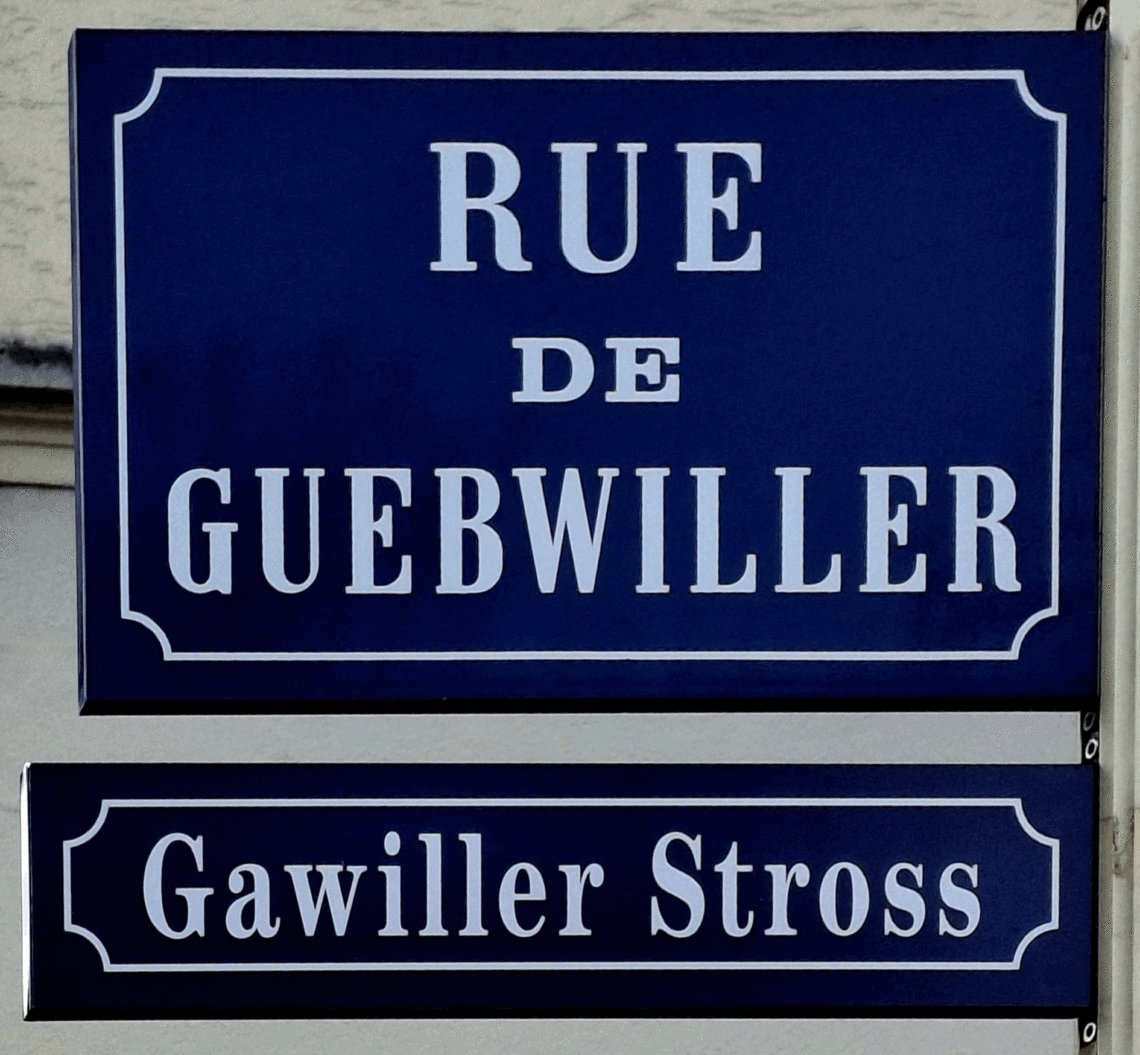 rue Guebwiller (rue de) / Gawiller Stross 23 février 2026 Précédent Garonne (rue de la) / Schwàrzwàldhiser Stross Plus récent Isly (quai d') / Spiegelfald Vous aimerez aussi Col du Linge (rue du) / Ganzlewag 23 août 2016 Pervenche (rue de la)/ Ìmmergrian Stross 28 décembre 2020 Nordfeld (rue du) / Nordfàld Stross 23 août 2016